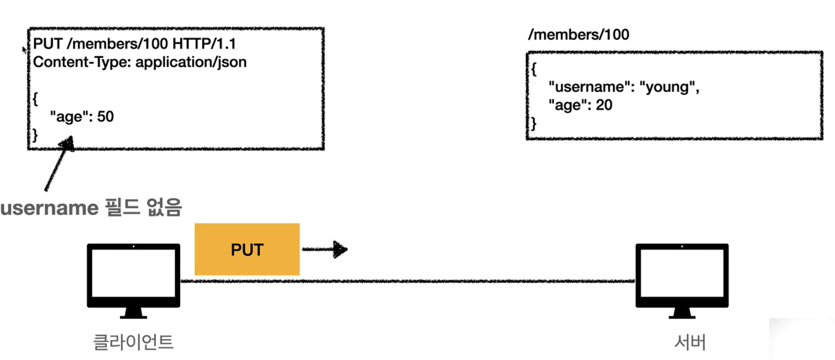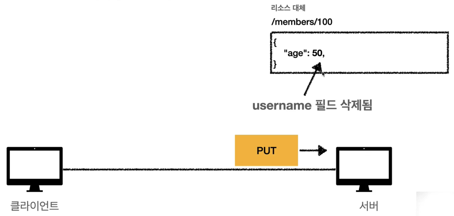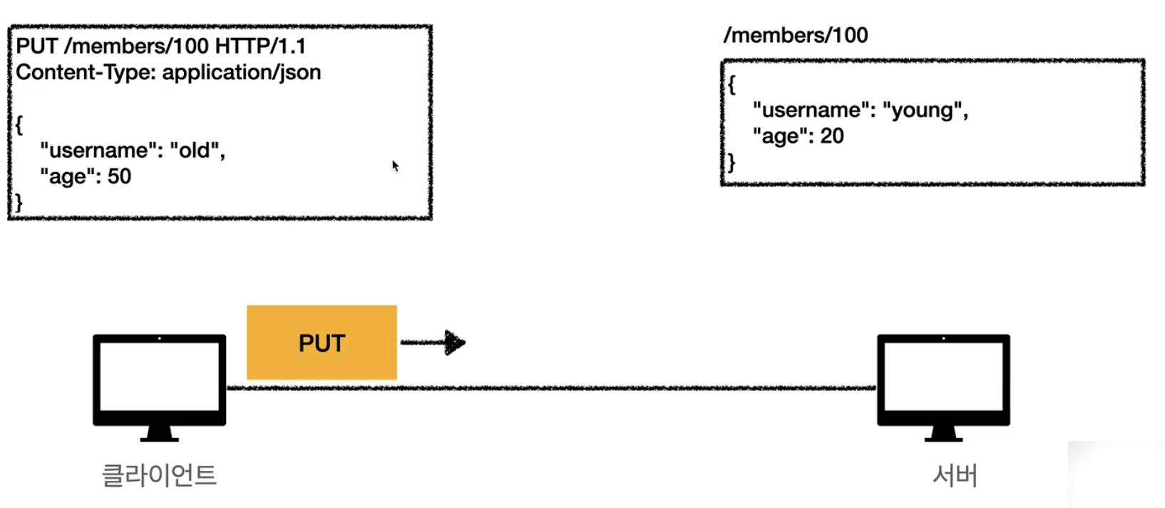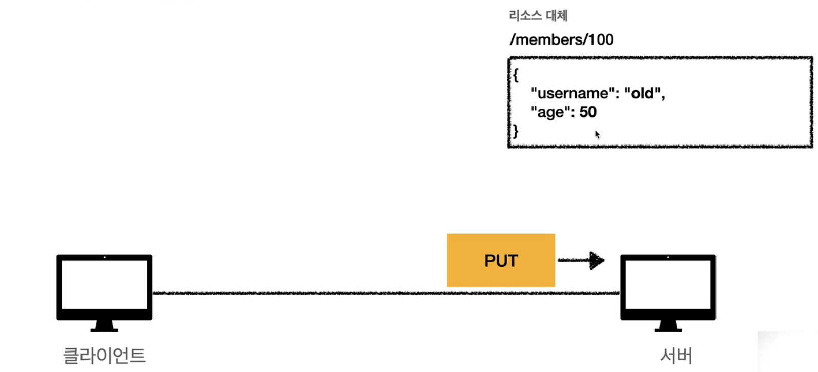 - PUT: 리소스를 대체, 해당 리소스가 없으면 생성