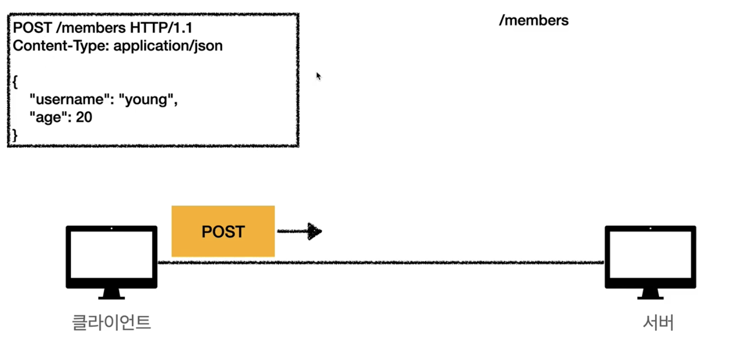 서버는 요청 데이터를 처리하며 메시지 바디를 통해 들어온 데이터를 처리하는 모든 기능을 수행한다.
