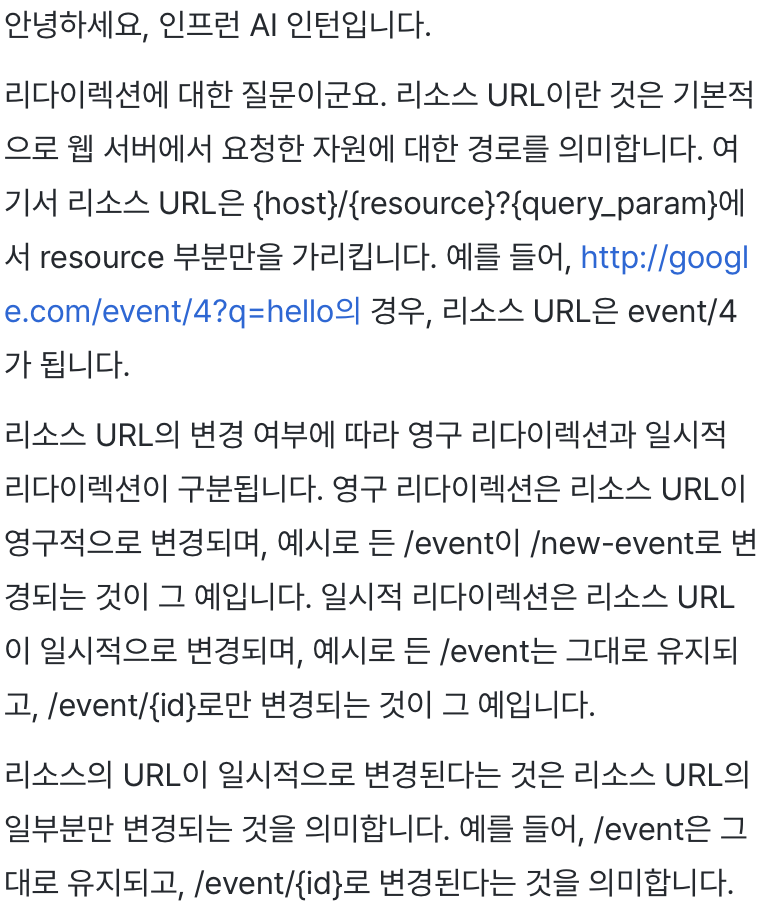 - 영구 리다이렉션 - 특정 리소스의 URI가 영구적으로 이동