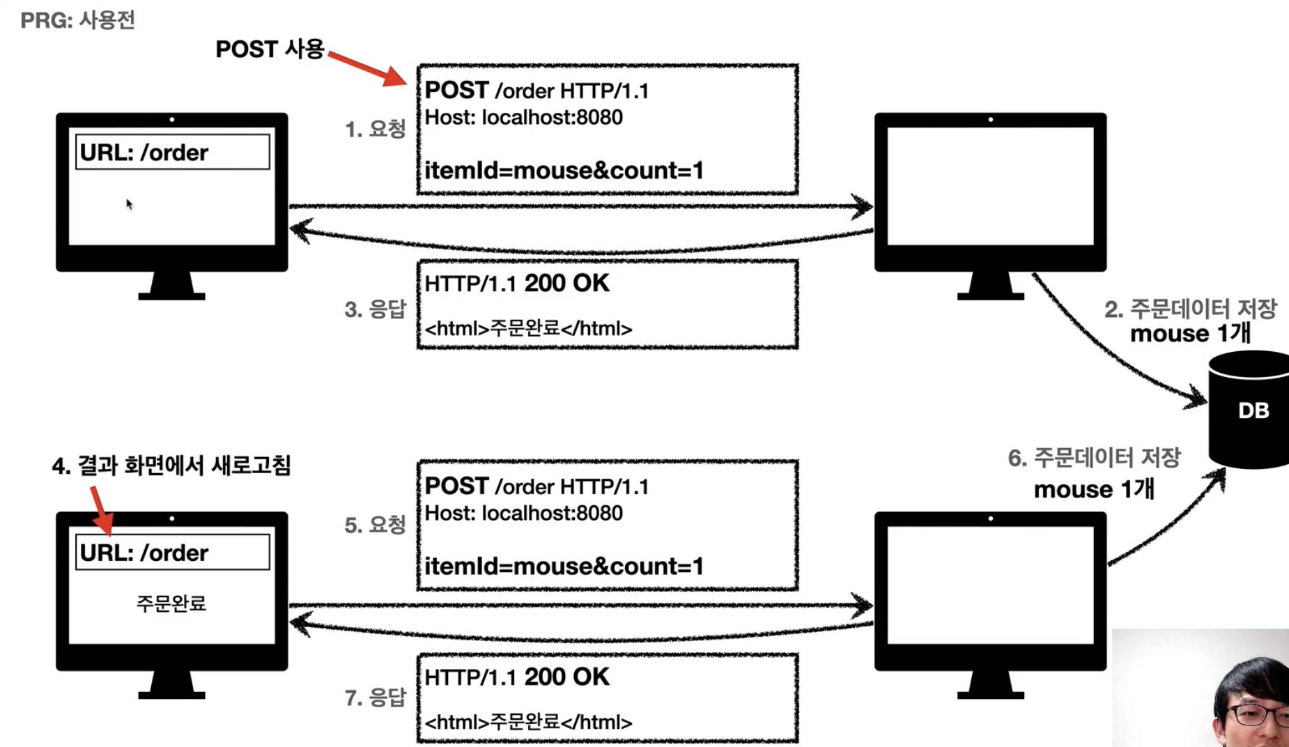 - POST로 주문후에 웹 브라우저를 새로고침하면?