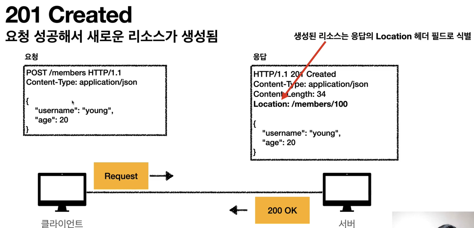 - 201 Created (클라이언트가 요청한 것을 서버 쪽에서 리소스를 생성함)