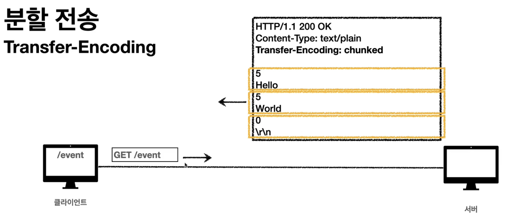 :쪼개서 전송한다. 용량이 엄청 클 때 한번에 보내면 기다려야하기 때문에 분할로 전송하면 오는대로 바로바로 표시할 수 있다.