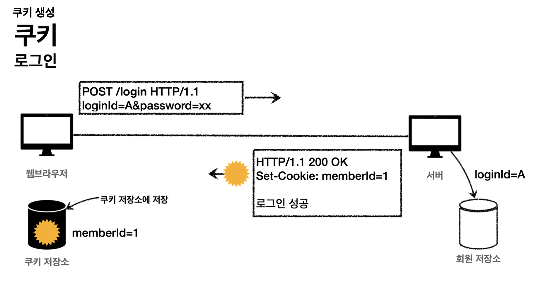 서버에서 로그인에 성공하면 HTTP 응답에 쿠키를 담아서 브라우저에 전달하자. 그러면 브라우저는 앞으로 해당 쿠키를 지속해서 보내준다.