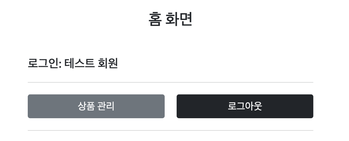 실행해보면 로그인이 성공하면 홈으로 이동하고, 로그인에 실패하면 "아이디 또는 비밀번호가 맞지 않습니다."라는 경고와 함께 로그인 폼이 나타난다. 그런데 아직 로그인이 되면 홈 화면에 고객 이름이 보여야 한다는 요구사항을 만족하지 못한다.