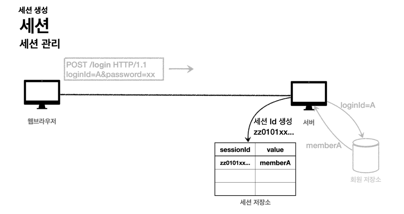 ( `memberA` )을 서버의 세션 저장소에 보관한다.