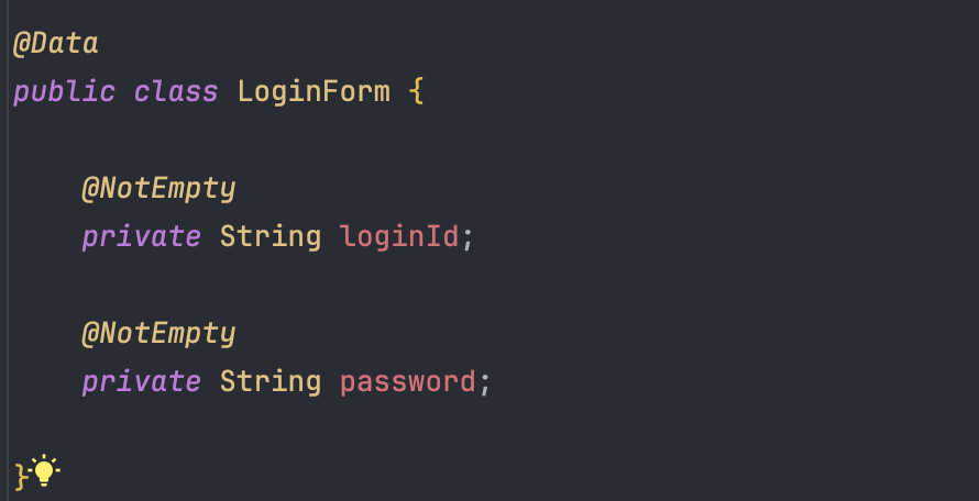 빈 값이 들어오면 안되기때문에 @NotEmpty Validation을 사용하였다.