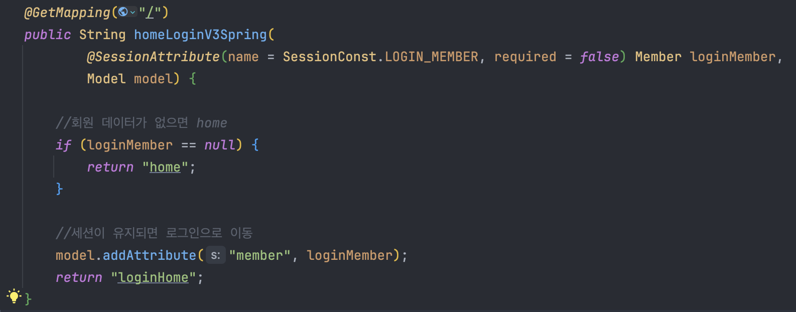`@SessionAttribute(name = "loginMember", required = false) Member loginMember`