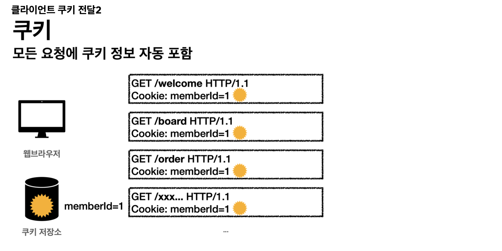 HTTP 강의에서 일부 설명했지만, 쿼리 파라미터를 계속 유지하면서 보내는 것은 매우 어렵고 번거로운 작업이다. 쿠키를 사용해보자.