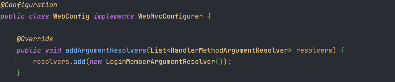 : 앞서 개발한 'LoginMemberArgumentResolver' 를 등록하자.