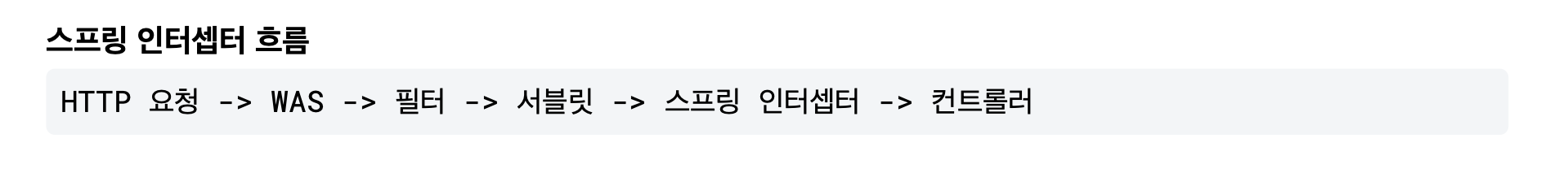 서블릿 필터가 서블릿이 제공하는 기술이라면, 스프링 인터셉터는 스프링 MVC가 제공하는 기술이다.