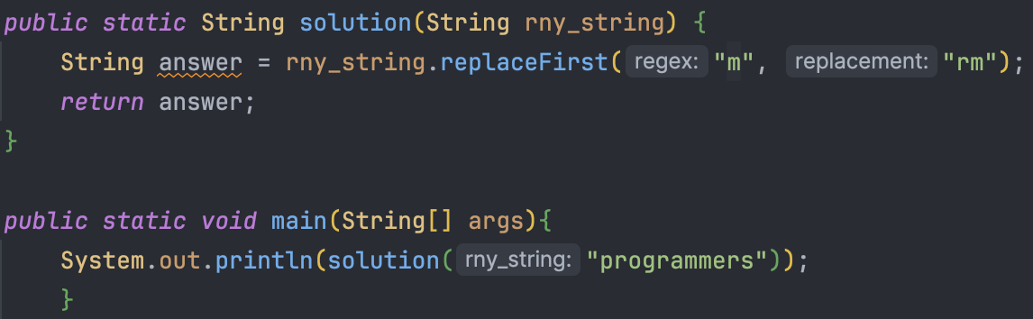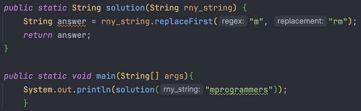 첫 번째 문자로 m을 넣어주니, 첫 번째 문자가 바뀌어서 출력되는 것을 볼 수 있다.