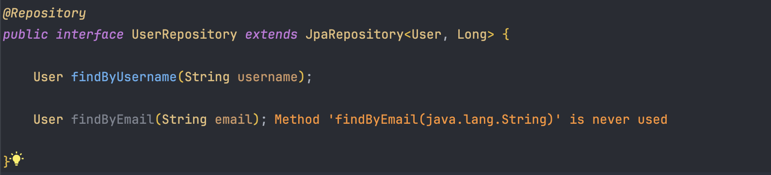 UserRepository는 JpaRepository를 상속받았기 때문에 @Repository라는 애노테이션이 없어도 IoC가 된다.