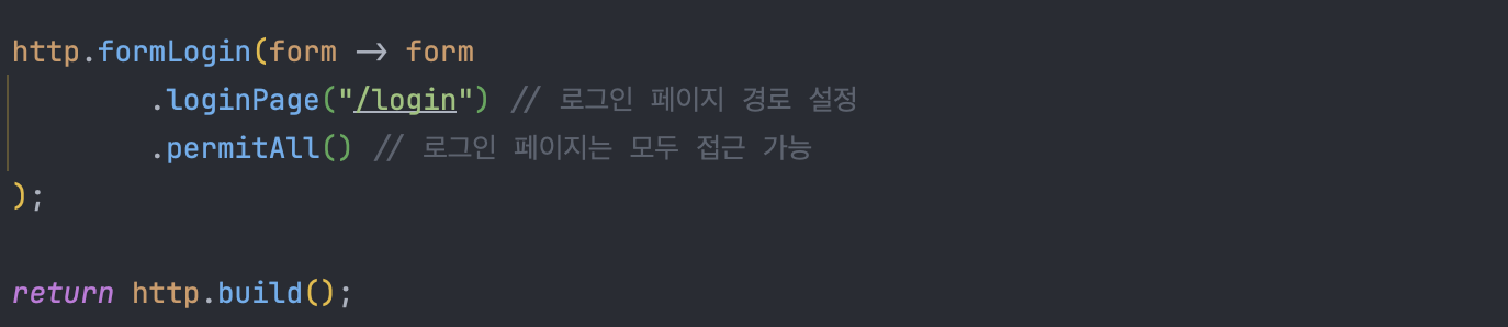 :로그인 페이지는 인증 없이 누구나 접근할 수 있도록 설정한다. - http.build()