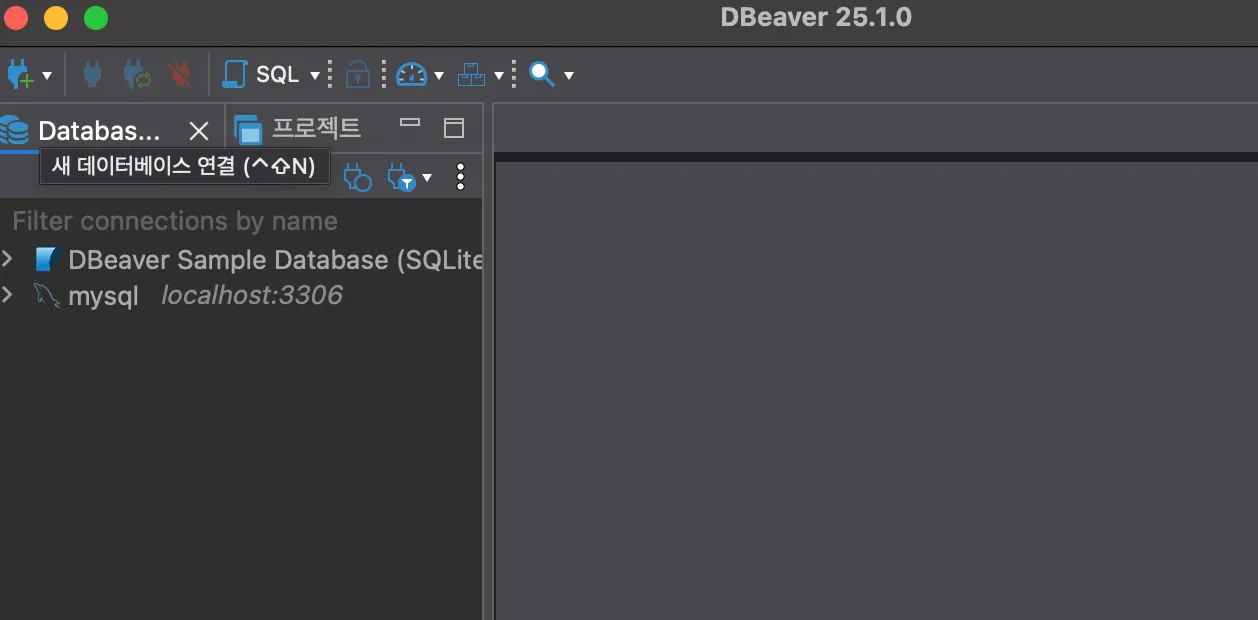 위에 콘센트 버튼을 눌러서 새 데이터베이스 연결을 해준다.