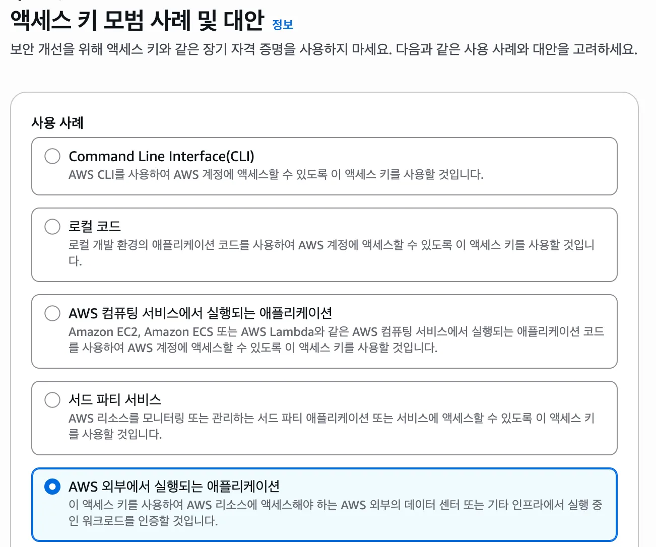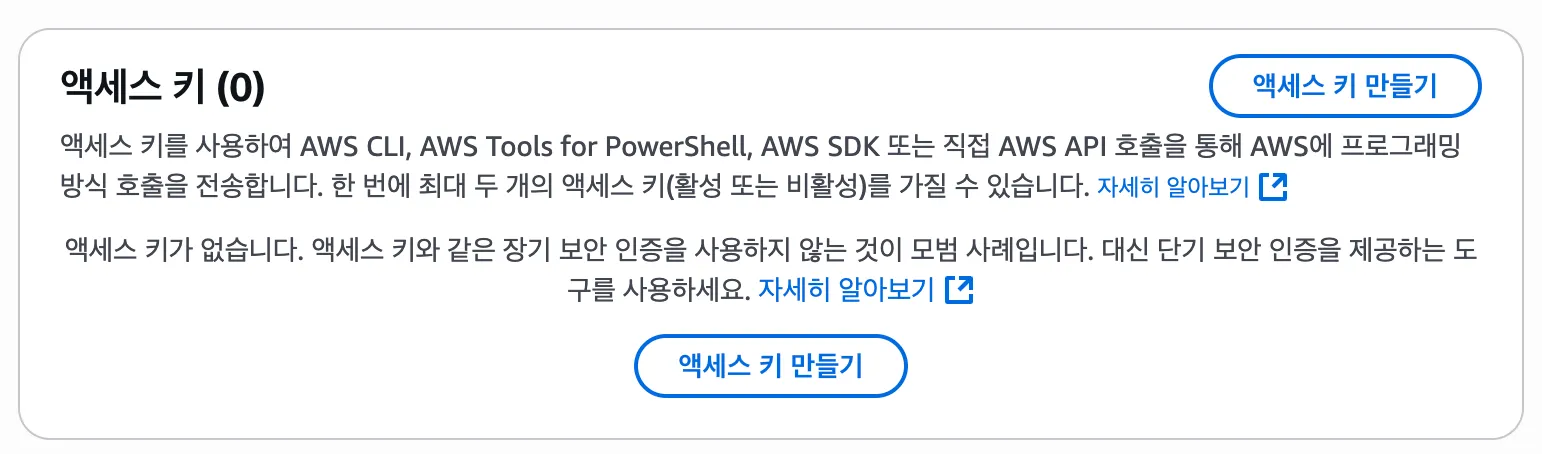 설명 태그 값은 생략해도 된다. 액세스 키를 만들자!