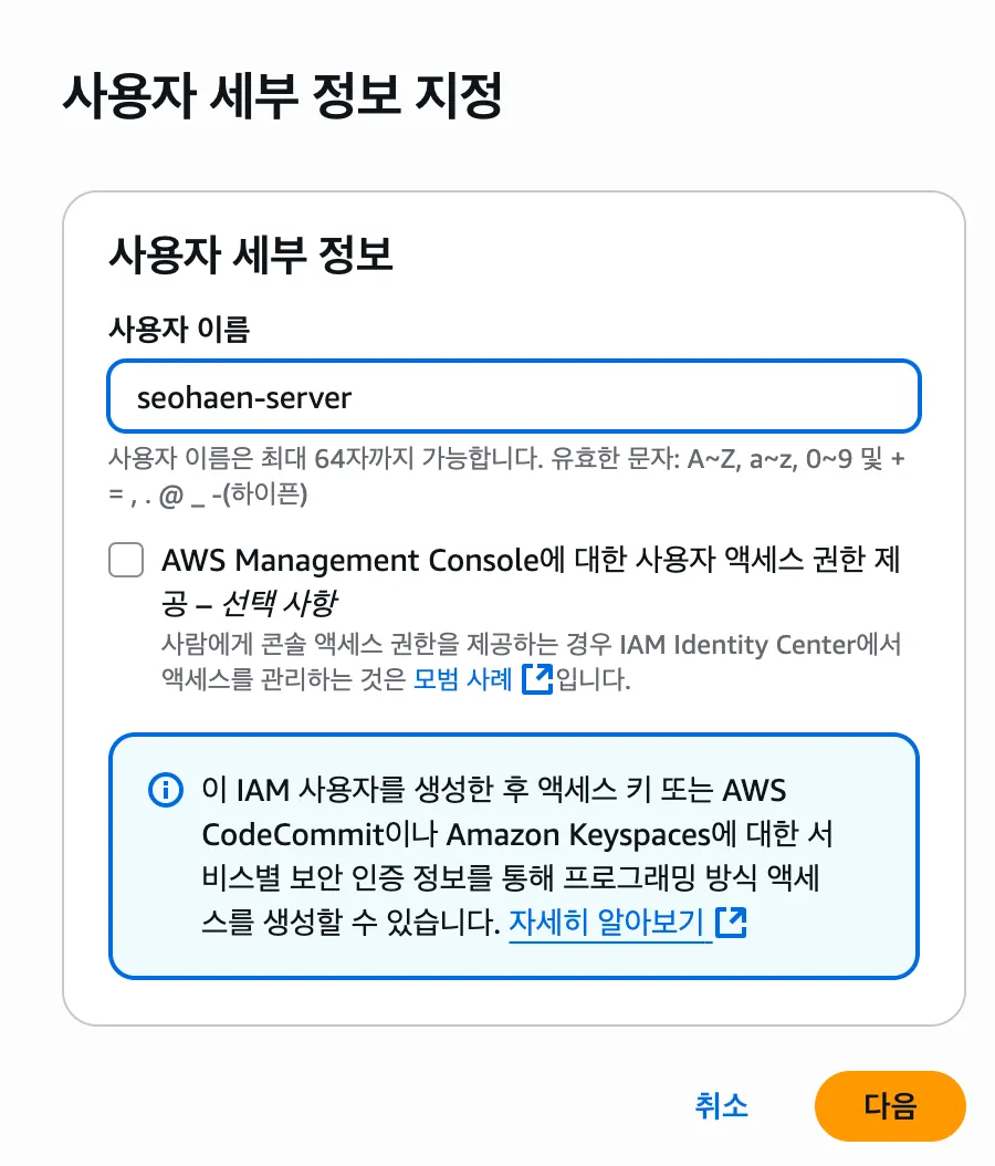 S3에 파일을 업로드할 수 있도록 IAM에서 액세스 키 발급받기