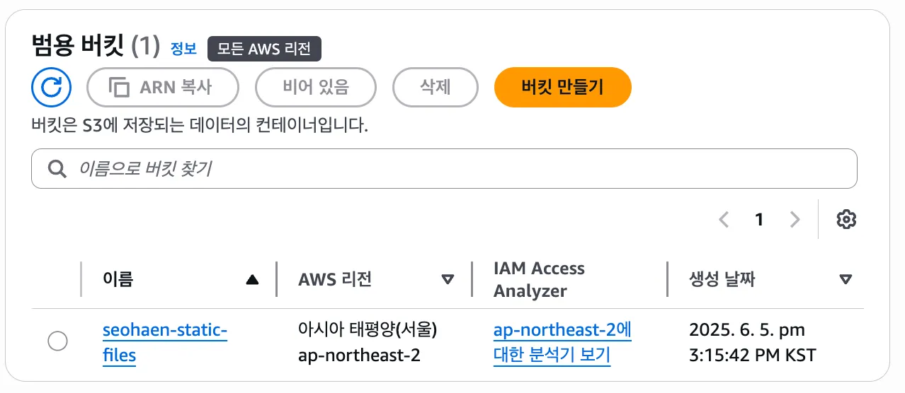 예전에는 다른 사람이 세팅해놓은 걸 그냥 가져다 썼는데, 이번에 처음부터 버킷 만들고 정책 추가하고 IAM 키 발급까지 전부 해보니까 전체 구조가 머릿속에 그려진다.