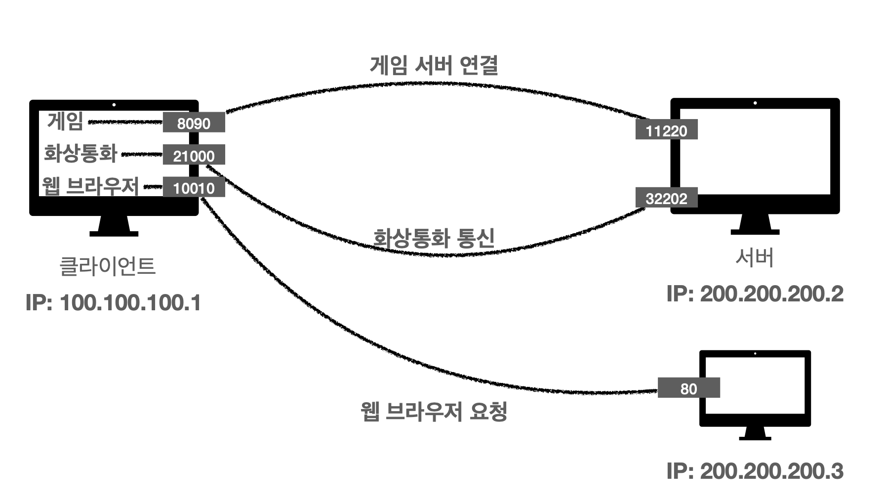 : 예를 들어서 우리의 PC에서 게임을 하면서도 화상통화를 하고, 웹 브라우저 요청도 하고있다. 이렇게 되면 한 번에 하나의 클라이언트가 여러개의 서버와 통신해야한다. 하지만 서버에서 패킷이 날아올텐데, 이것이 게임에서 필요한 패킷인지, 웹 브라우저 요청에서 응답 결과로 오는 패킷인지 알 수 없다(보낼때도 마찬가지).