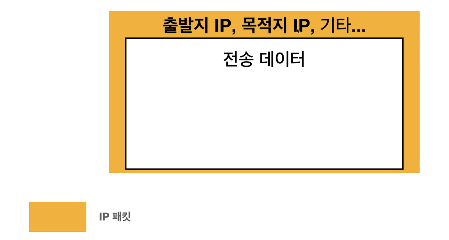 - TCP 정보를 씌운 위에 밖에 IP 정보를 씌우게 된다. => IP 패킷 생성됨