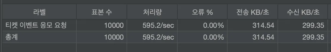 표본수 1000일 때, 1초당 595개를 처리한다.(tps: 595)