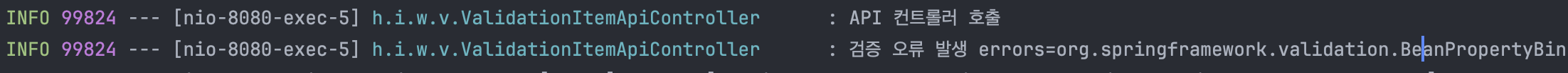 로그를 보면 검증 오류가 정상 수행된 것을 확인할 수 있다.
