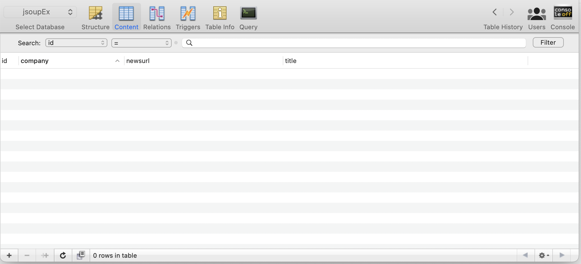 서버를 시작한 뒤 비어있는 jsoupEx DB를 확인 !