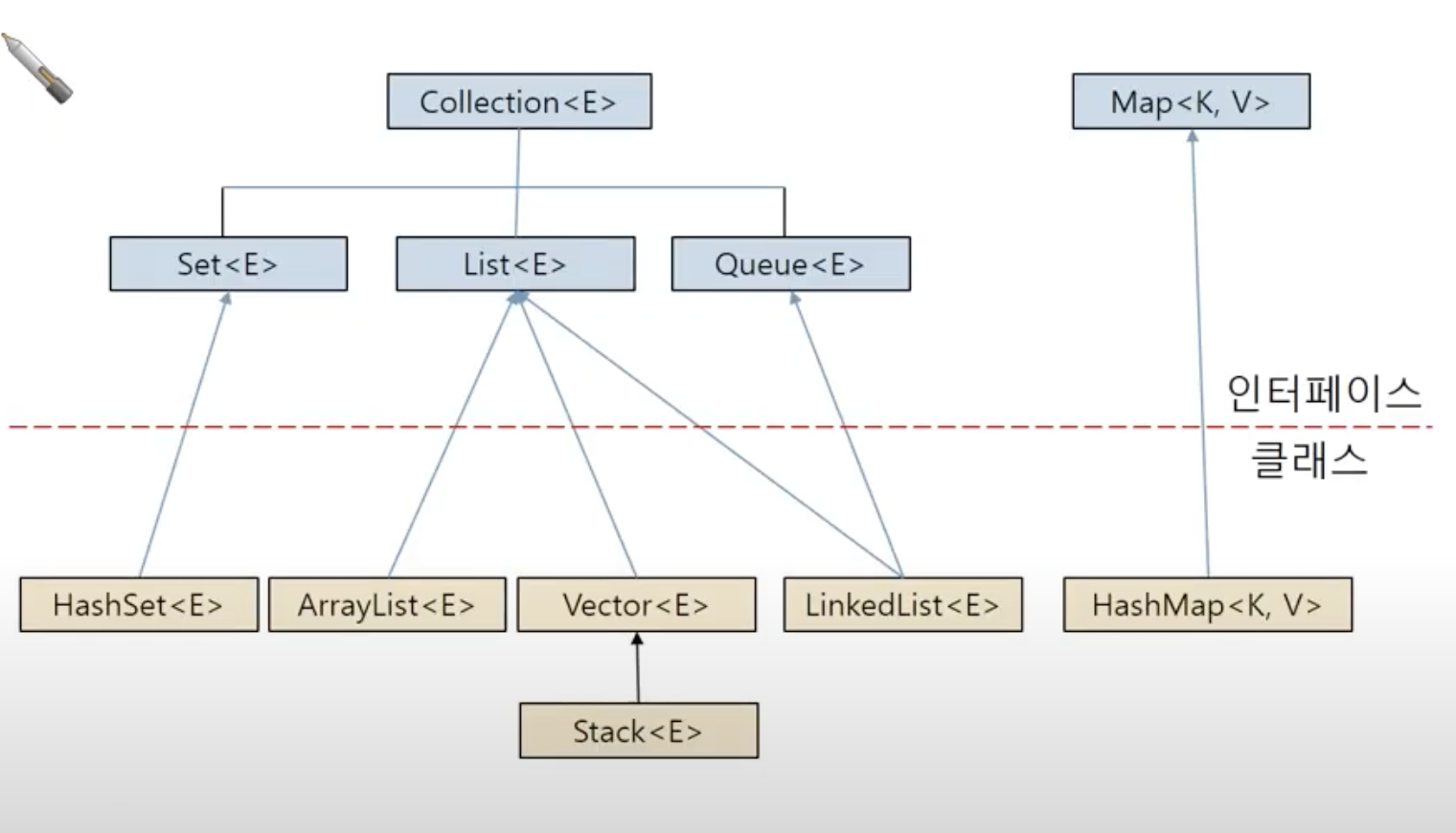 - <E>에 사용할 요소의 특정 타입으로 구체화 (ex)Vector<Integer>
