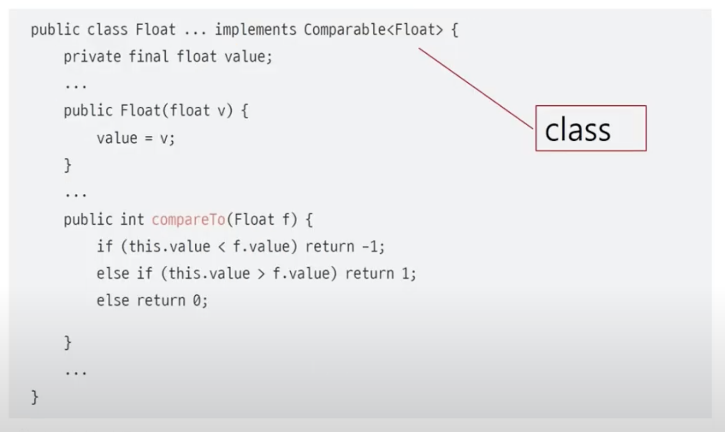public int compareTo(클래스이름 Other){