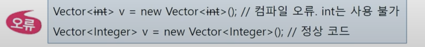 - 정수만 다루는 컬렉션 벡터 Vector<Integer>