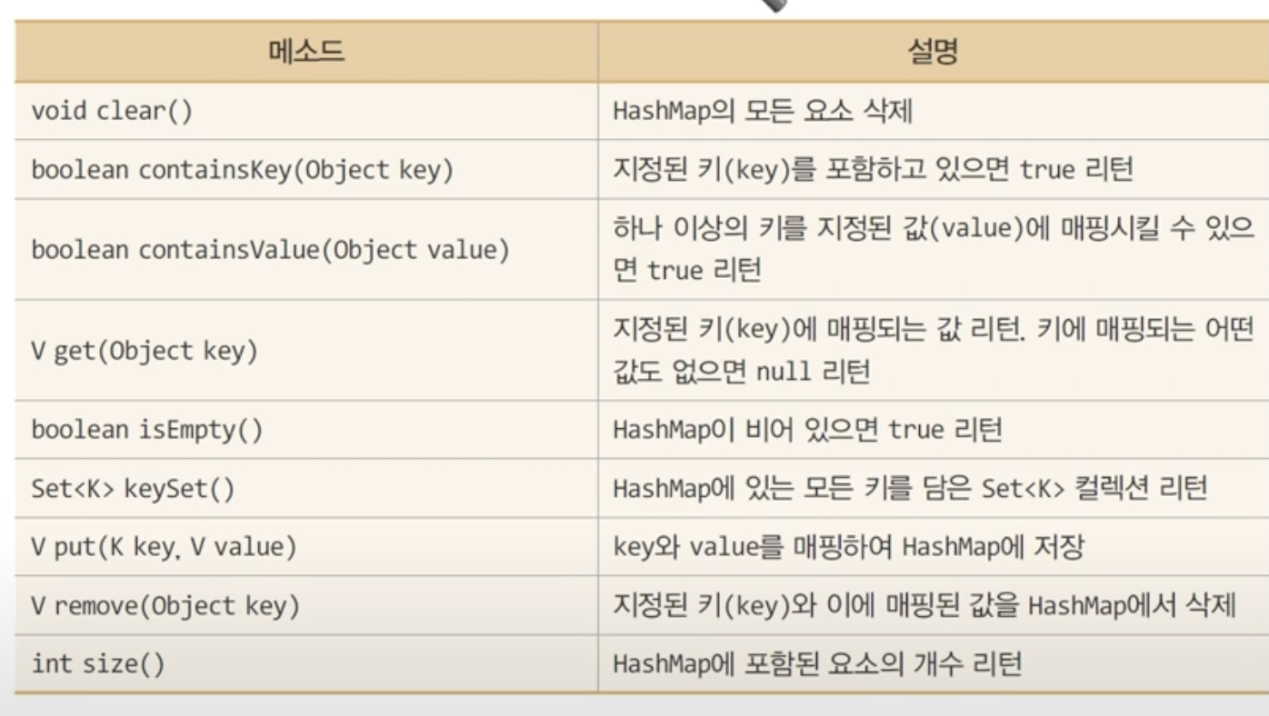:키(key)와 값(value)의 쌍으로 구성되는 요소를 다루는 컬렉션