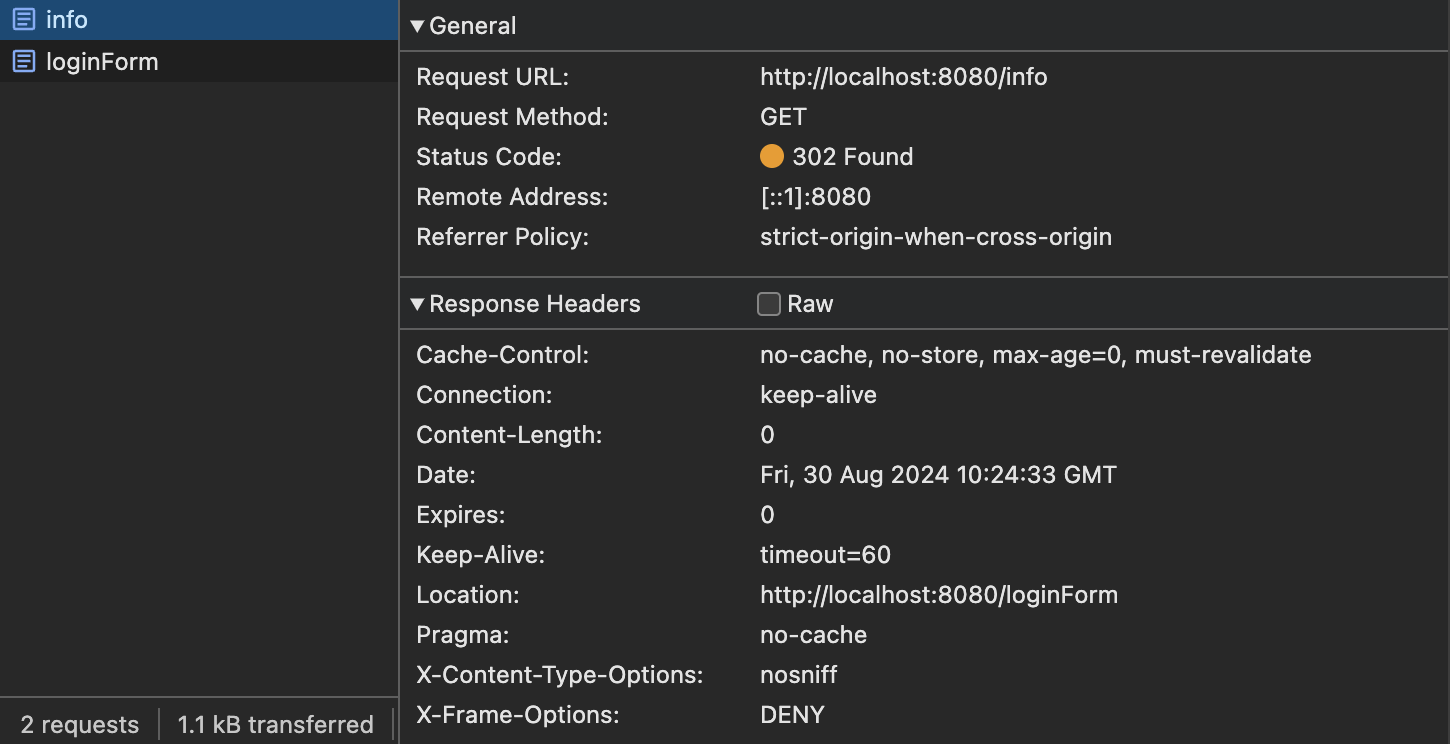 로그인하지 않고 "/info" 혹은 "/data" URL에 접근 시
