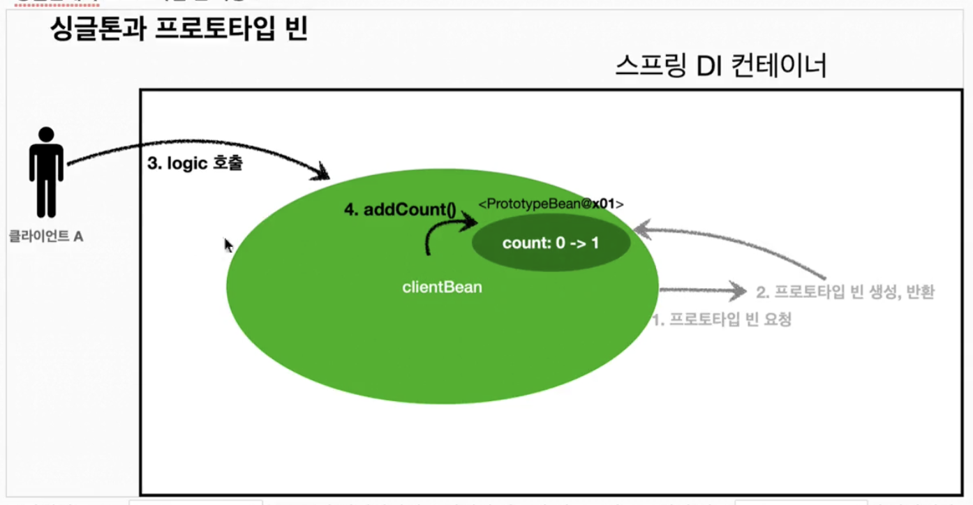 - 3. 클라이언트는 조회한 프로토타입 빈에 "addCount()"를 호출하면서 count 필드를 +1 한다.