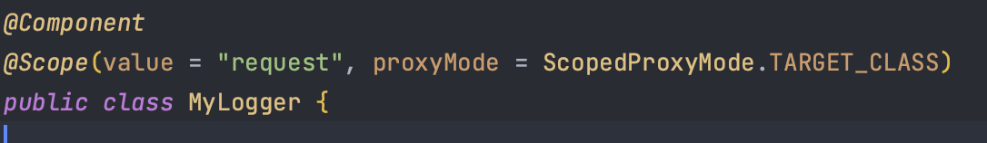 - 이렇게 하면 MyLogger의 가짜 프록시 클래스를 만들어두고, HTTP request와 상관없이 가짜 프록시 클래스를 다른 빈에 미리 주입해 둘 수 있다.