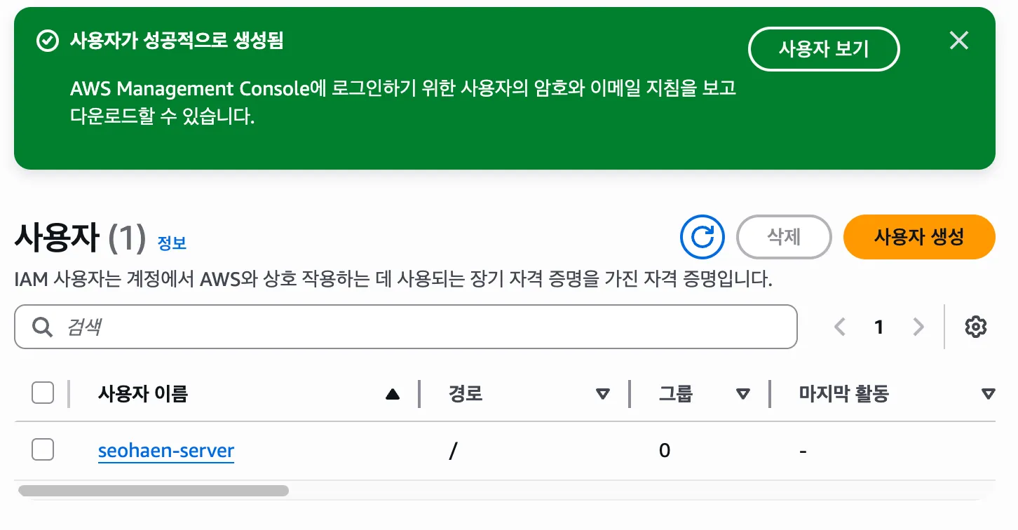예전에는 다른 사람이 세팅해놓은 걸 그냥 가져다 썼는데, 이번에 처음부터 버킷 만들고 정책 추가하고 IAM 키 발급까지 전부 해보니까 전체 구조가 머릿속에 그려진다.