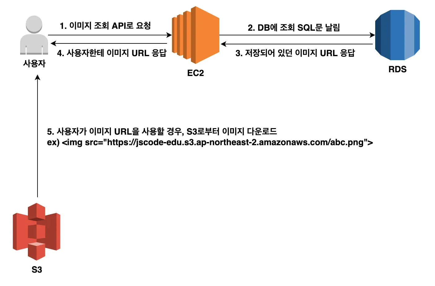 EC2는 받은 이미지 URL을 사용자한테 응답을 하게되고, 사용자가 이미지 URL을 사용할 경우, S3로부터 이미지를 다운로드 받는다.