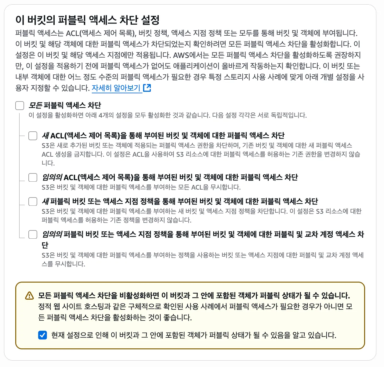 버킷에서의 정책이 무엇을 의미하는지 알아보자.